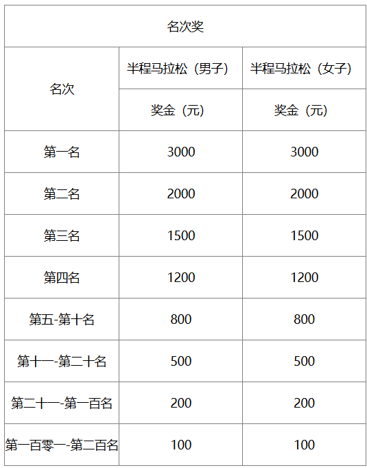 (一)半程马拉松(个人奖励)