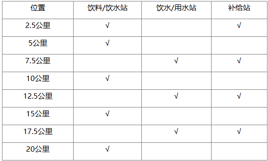 注:禁止任何未经许可的个人接触参赛选手的饮水和饮料,同时也禁止参赛选手接受在非组委会的固定供水点或其他选手递交的任何饮水和饮料。
